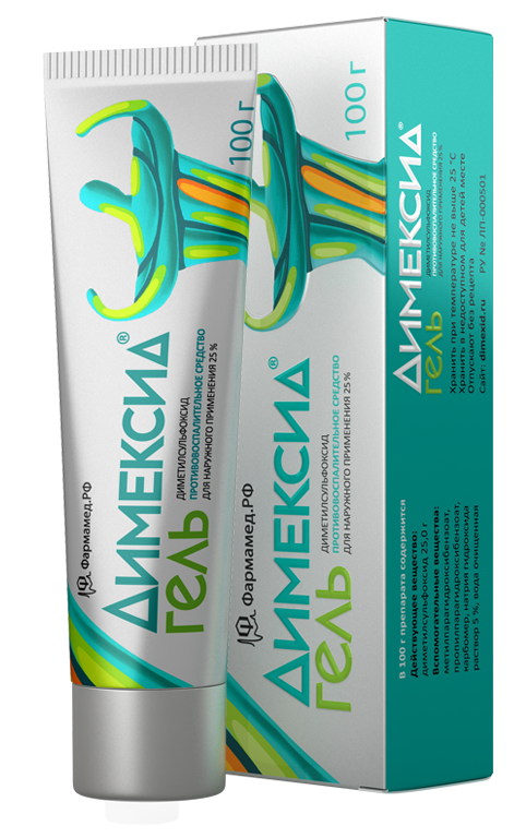 Димексид® гель рекомендован в комплексной терапии деформирующего остеоартроза при наличии поражения периартикулярных тканей. Улучшает течение метаболических процессов в очаге воспаления. Оказывает местноанестезирующее, анальгезирующее и противомикробное действие. Обладает умеренной фибринолитической активностью.